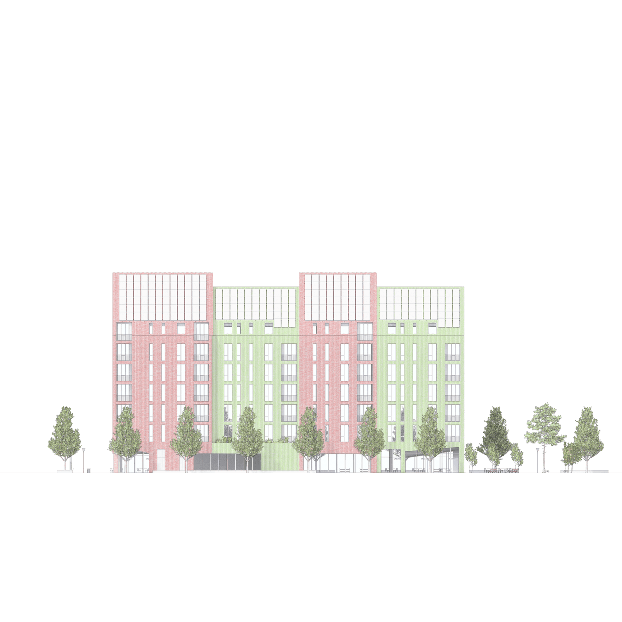 The building is organized around a clear and efficient residential framework that balances density with comfort.