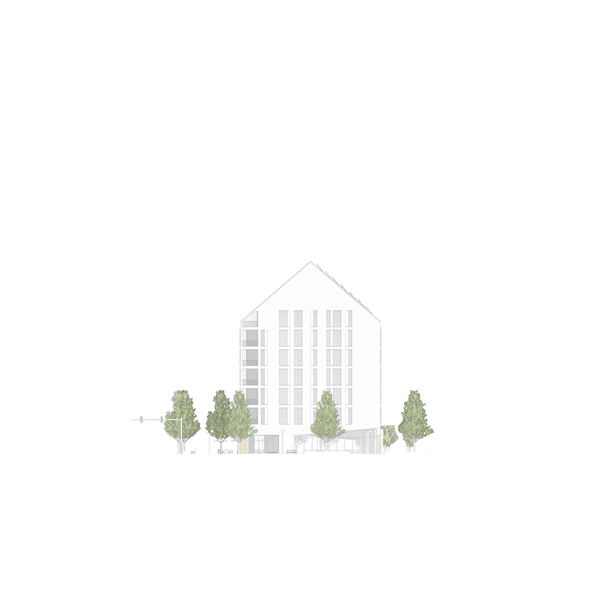 Residential levels maximize daylight, views, and cross ventilation while maintaining privacy and acoustic separation from street activity. A mix of unit types supports diverse households, with efficient circulation, clear zoning, and outdoor spaces that extend living areas toward the neighborhood.